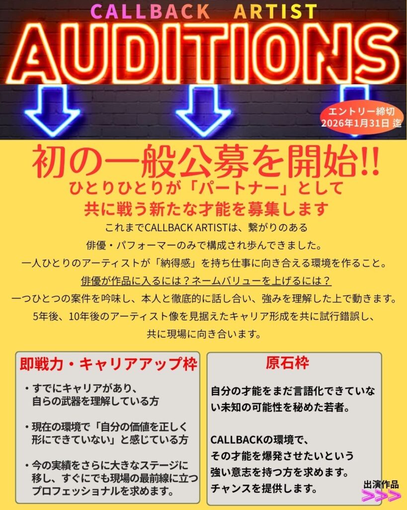 舞台、音楽、映像などCALLBACK TOKYOが関わる エンタメの様子を発信します。 詳しくはこちら